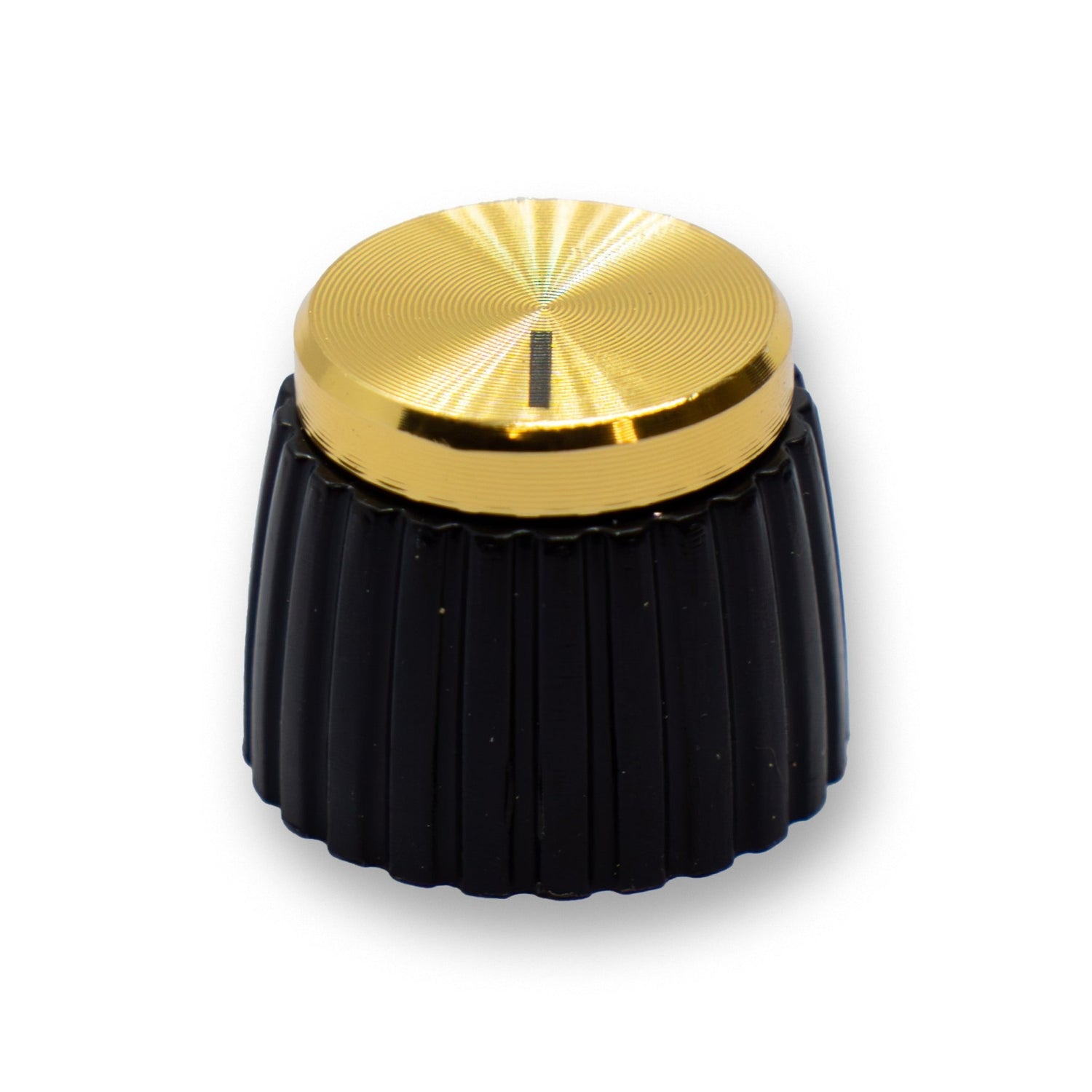 Potentiometer Knobs, Marshall Style Black Plastic Gold Cap.
