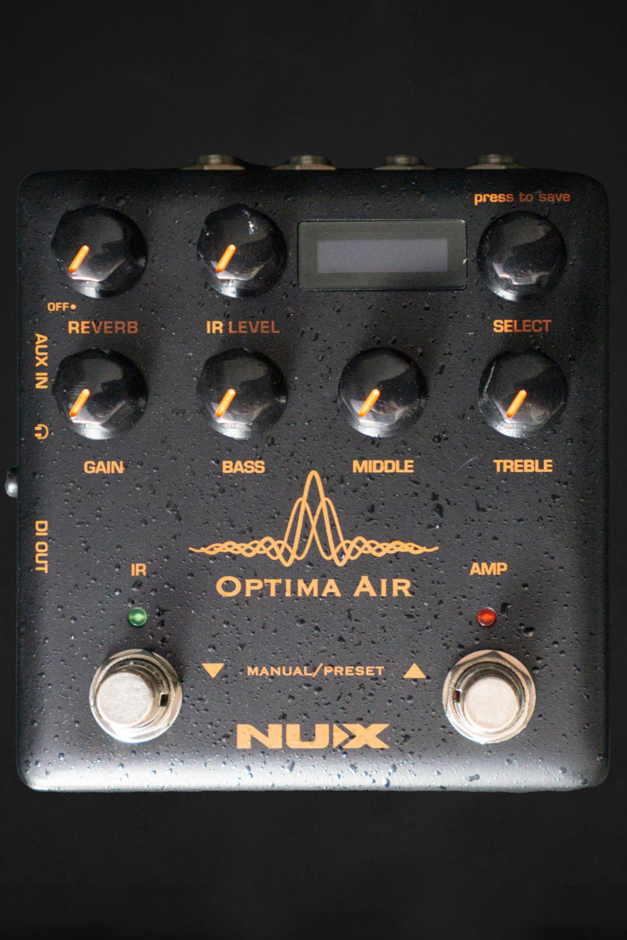 NUX Optima Air is a dual-switch acoustic guitar simulator with a preamp for acoustic and electric guitar players. It simulates the acoustic guitar profiles with the best-optimized sound depending on your guitar and pickup type.