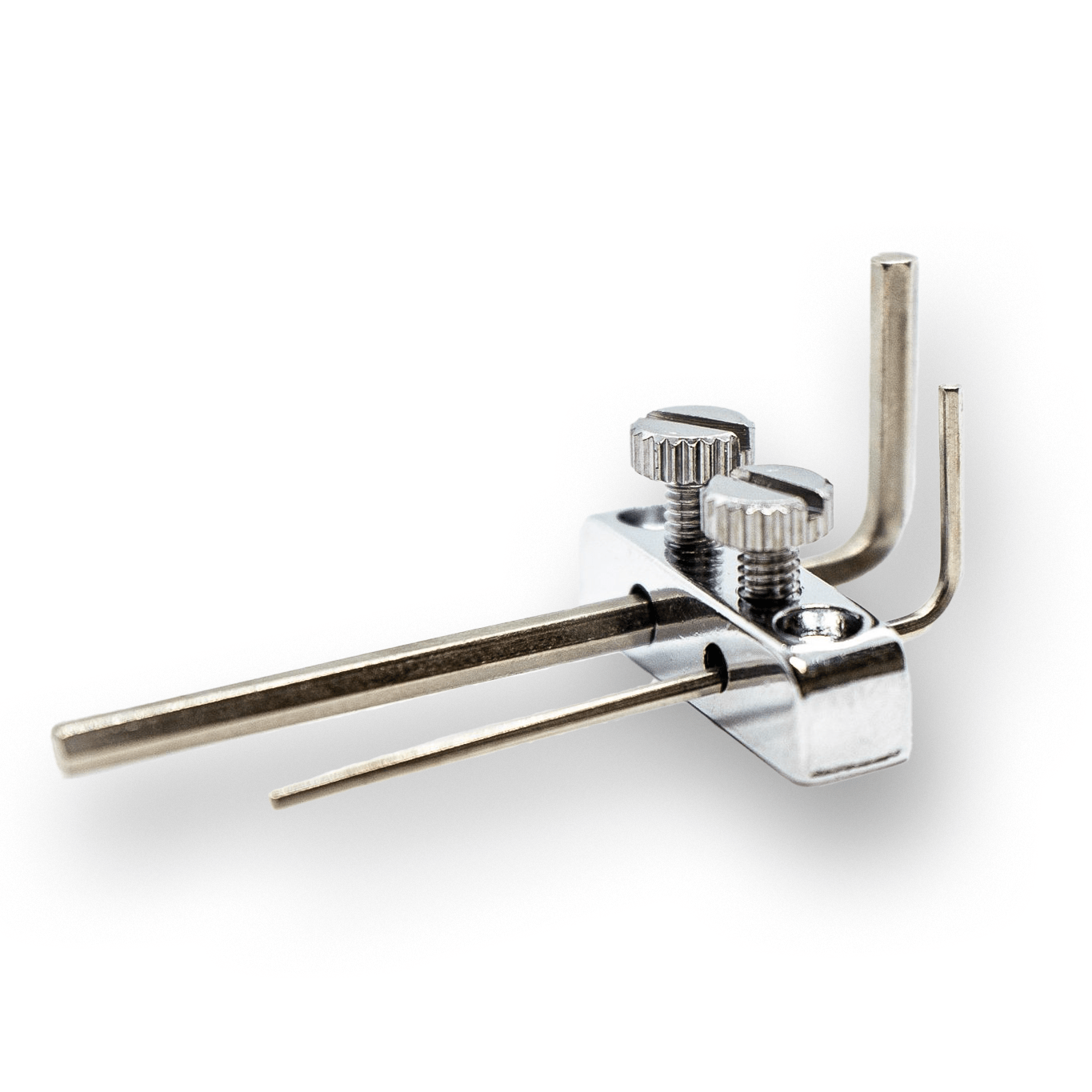 Especially useful for guitars with locking nuts. Mount on rear of headstock for easy access and adjustment.