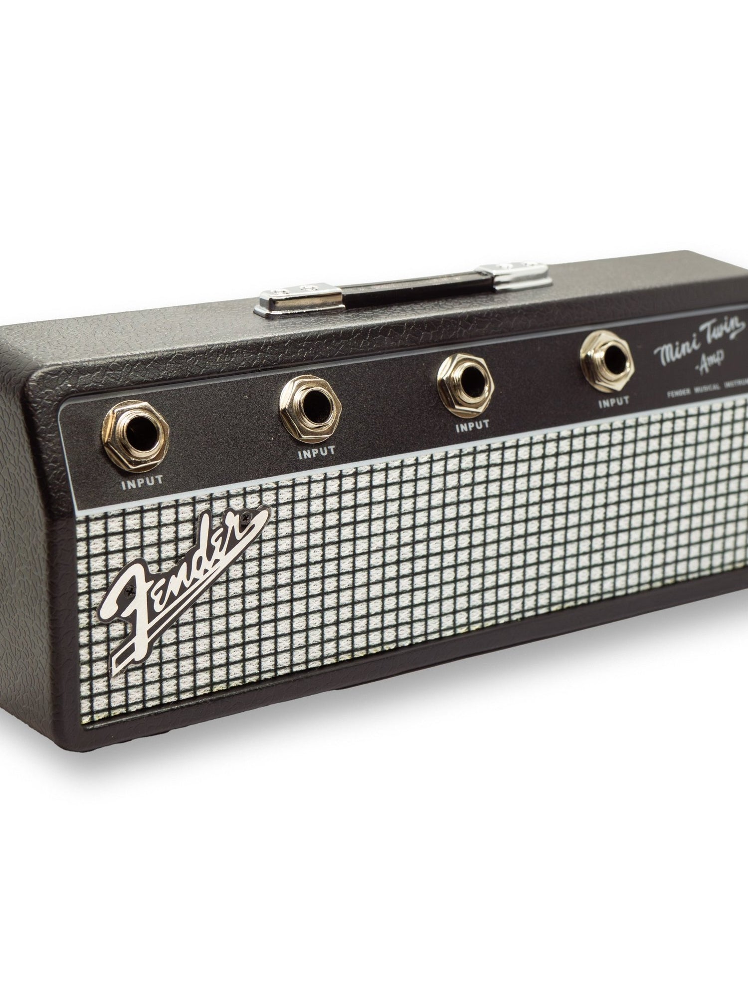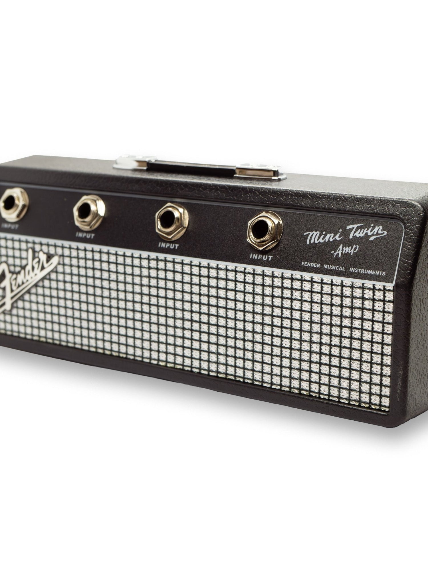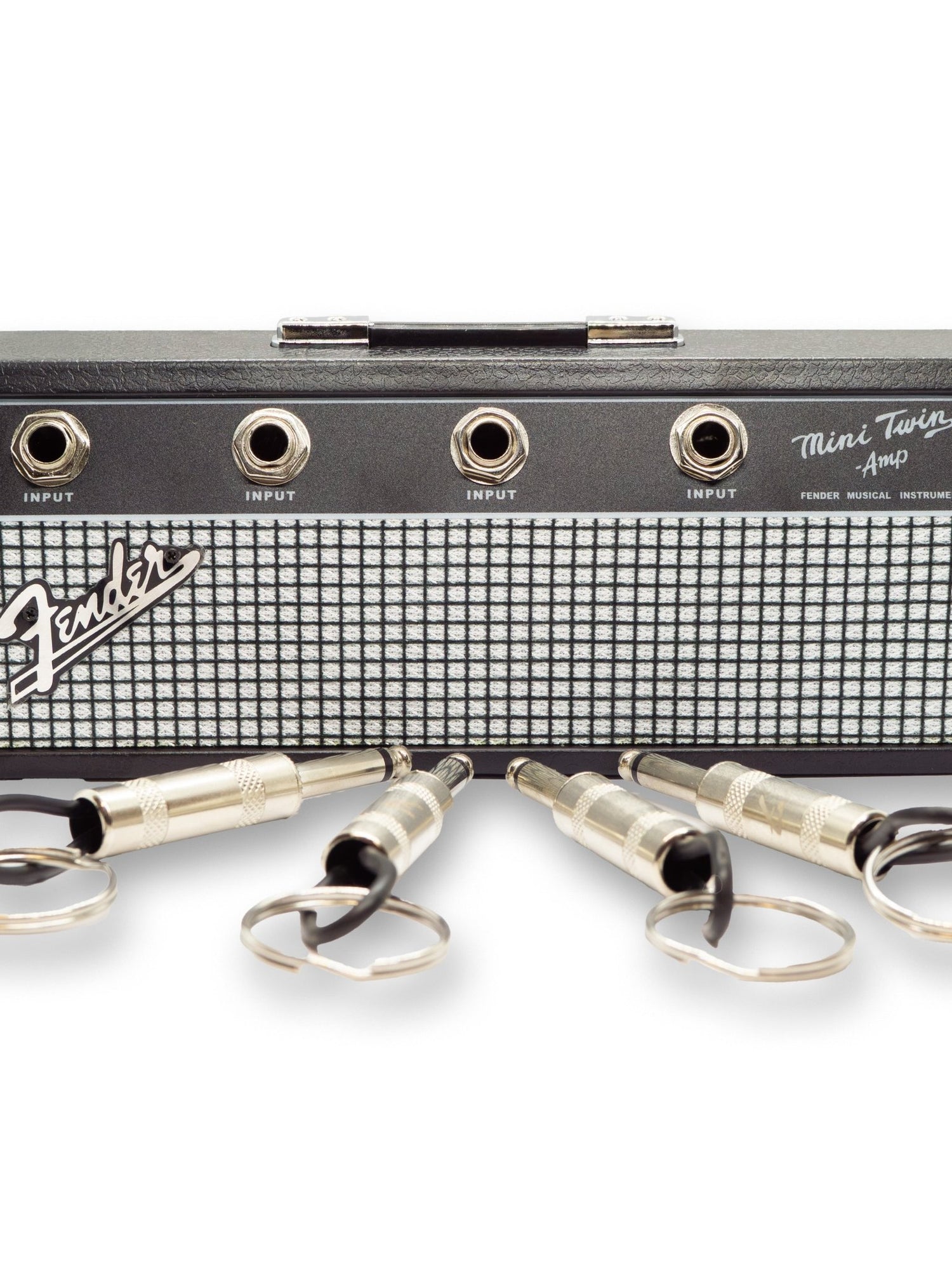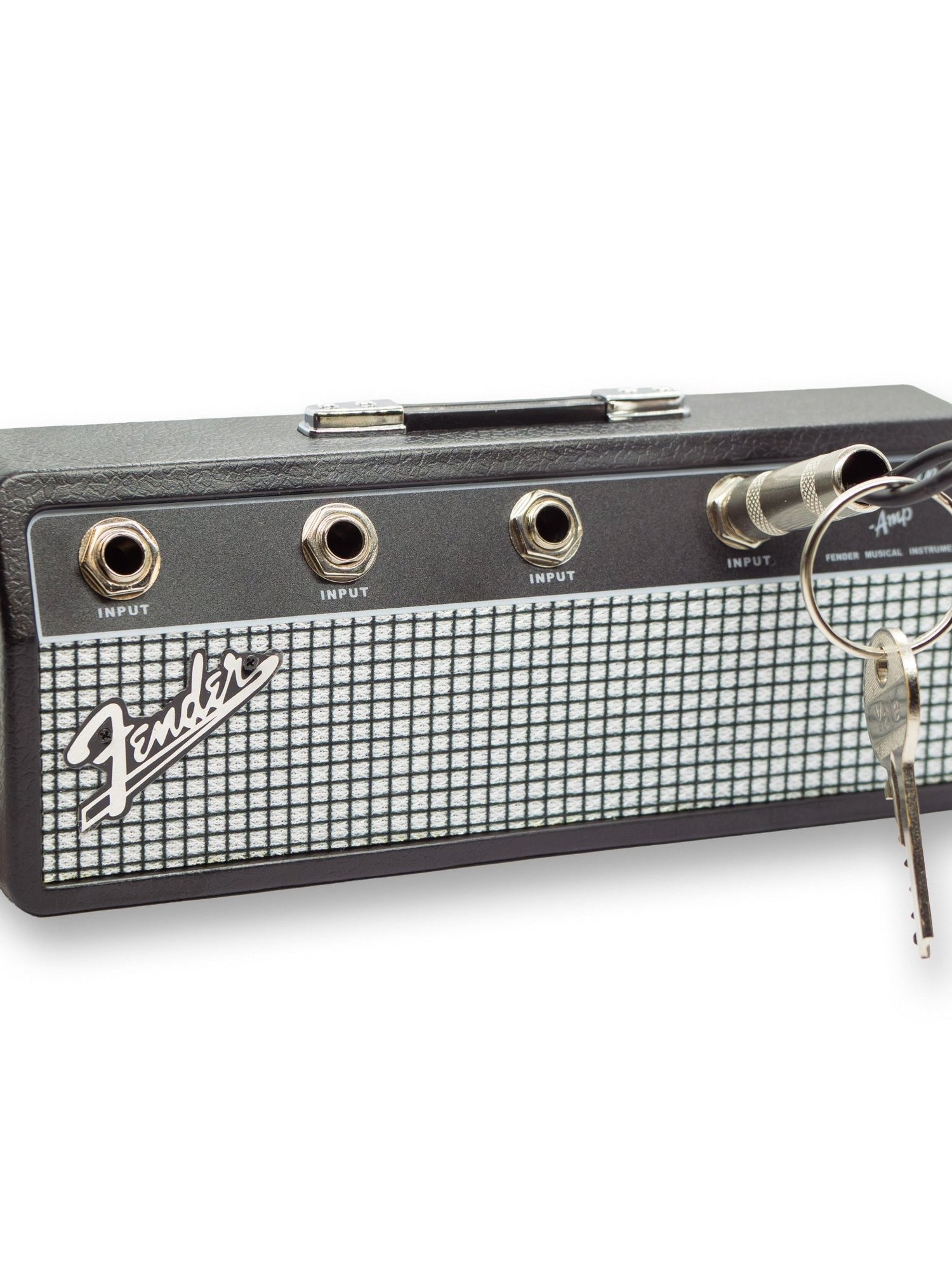 The perfect accessory for any music lover or guitarist. This official Fender Jack Rack holds up to 4 sets of keys using real 1/4" jack-style keyrings—just plug them in like a guitar cable. Comes with 4 jack keyrings, wall mounting screws, and wall plugs for easy installation. Looks just like a miniature amp and keeps your keys organised in true Fender style.